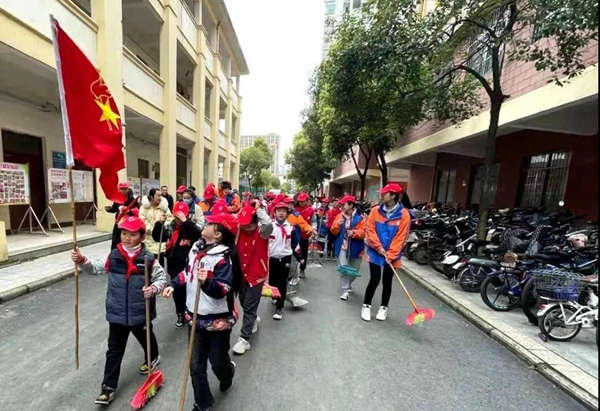 會后,黨支部書記張水秀協同團支部書記周豪、大隊輔導員謝珊珊一行50余名志愿者,走出校門,來到臨街路面、人行通道,進行了全面認真地清理打掃。志愿者隊伍里既有黨員、團員,還有我們的少先隊員,他們扛著掃把,拿著撮箕、鉗子、鏟子等工具,發揚不怕臟、不怕累的作風,把路邊的垃圾全部清掃干凈。經過大家的共同努力,道路兩旁煥然一新,營造了干凈整潔的環境。