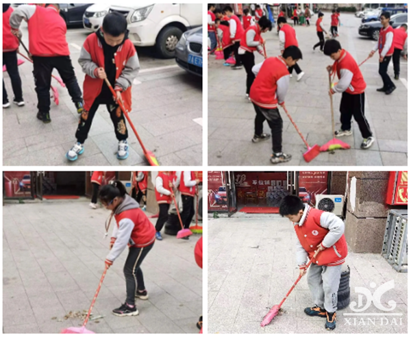 當天下午第三節課,在學部政教處喻主任及鄧老師的帶領下,五六年級的30位同學,拿著掃把、鏟子等工具,認真對學校周邊小區門前垃圾進行清掃。不僅美化了轄區內的環境衛生,也激發了學生踐行雷鋒精神的熱情。
