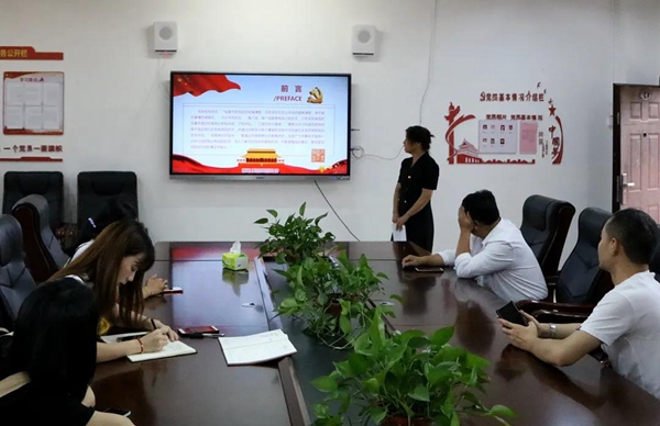 隨后,組織開展了一場“學黨史 守初心 擔使命”為題的“四史”專題學習。黨支部書記張水秀用PPT展現了“學習習近平總書記關于黨的歷史的重要論述,認識黨史學習教育的重大意義”,從“四史”是什么?、開展“四史”宣傳教育的重要意義及從學習四史中汲取那些智慧和前進力量三個方面,給黨員講述了一堂生動的黨課。