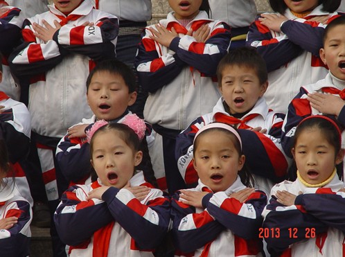 12月26日,我校象湖校區小學部在校園大操場舉辦了大型愛國歌曲歌詠會,慶祝元旦和紀念毛澤東同志誕辰120周年。全校34個班級都踴躍參加,歌詠會上高潮迭起,掌聲不斷。