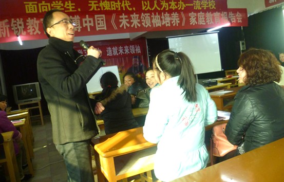 1月17日上午,南昌現代外國語學校(迎賓校區)在圖書館組織開展了一場別開生面的家庭素質教育“報告會”。學校特別邀請中國第一本青少年成功學和父母成功學《改變就在瞬間》的作者傅中國到校,現場向家長們演示了如何幫助孩子找回學習樂趣及動力,如何激發孩子的學習潛能創造學習奇跡,向家長演示如何把握教子成功成才的關鍵要素,如何有效激勵孩子改變自己。