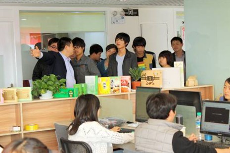 江西淘鑫總經理相梓午對同學們的來訪表示歡迎。他在該公司會議室為胡院長和同學們介紹了江西淘鑫的發展歷史、現狀及淘寶·特色中國江西館的基本情況,并就電子商務現狀和前景展開交流。作為此次創業學院的學生代表,同學們也在交流過程中就學院開展的電子商務創業實踐中,如淘寶店鋪進貨、代銷、推廣等實際問題與相總進行交流和學習,獲益良多。隨后,同學們在該公司人力資源部唐經理的帶領下,參觀了淘鑫電子商務有限公司的各部門工作場所和江西特產展示臺。其間,同學們就淘寶·特色中國江西館的運營、推廣及研發與淘鑫主管人員進行了充分交流。