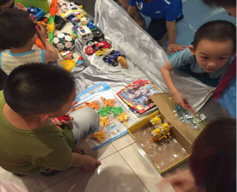 活動現場,孩子們紛紛拿出從家里整理出來的大大小小、各式各樣的玩具和學習用品擺起"小攤",做起生意來。同學們熱情參與,共同體驗,分享快樂,現場熱鬧非凡。