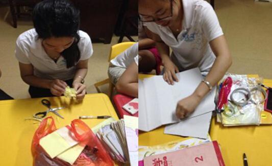我們的教師利用午休時間用她們的巧手認真地在制作手工作品