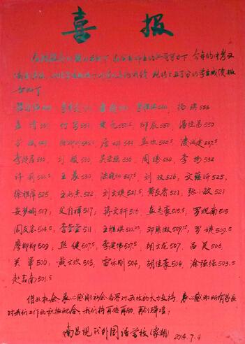2014年中考已經落下帷幕,王桂紅的辦公桌上放著一大疊中考資料,既有各班級、各學生的中考成績總結,也有與其他學校中考成績的對比分析資料。王桂紅說,對考試成績做總結分析是非常重要的一項教研工作。每次考試,學校都會精心組織教師進行數據分析,每次分析也是精細到每個班級、每位學生、每門學科,并從分析中汲取經驗教訓,為以后的工作做好參謀。戒驕戒躁、精益求精,這也正是南昌現代外國語學校象湖校區連續兩年中考取得佳績的另一重要原因。