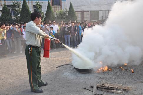 一陣急促的警報(bào)聲拉開(kāi)了“師生安全疏散演練”活動(dòng)的帷幕,聽(tīng)到警報(bào)聲,各位老師立即到達(dá)指定崗位,指導(dǎo)學(xué)生快速疏散,各班班主任帶領(lǐng)學(xué)生彎著腰、貓著步,捂住口鼻,沿著學(xué)校指定樓梯口快速前進(jìn),有序撤離到學(xué)校操場(chǎng)的安全地帶,隨即清點(diǎn)人數(shù),并層層向上匯報(bào)校領(lǐng)導(dǎo)。全校師生全部安全疏散完畢后,學(xué)校還邀請(qǐng)了工商學(xué)院保衛(wèi)處處長(zhǎng)周圣華對(duì)全體師生從如何報(bào)火警、火災(zāi)的預(yù)防、火場(chǎng)自救及逃生方法等消防安全基本常識(shí)進(jìn)行了講解。同時(shí),周圣華還現(xiàn)場(chǎng)演示了滅火器的操作程序,教導(dǎo)同學(xué)們?nèi)绾握_使用滅火器,并指導(dǎo)同學(xué)們現(xiàn)學(xué)現(xiàn)用,現(xiàn)場(chǎng)使用滅火器撲滅火源。