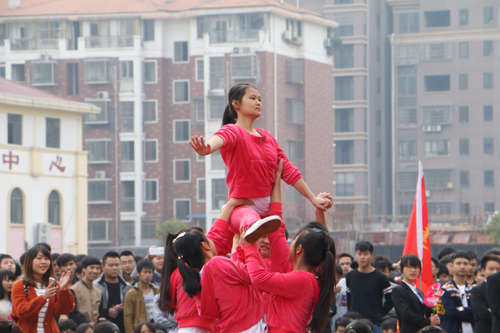 隨后,歌舞表演把開幕式的氣氛推向了高潮,同學們用動感舞動青春,引起全場的轟動。