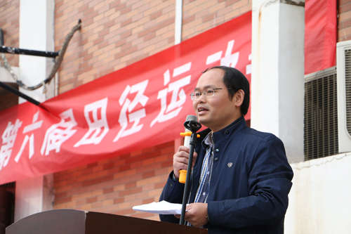 歌舞表演完畢,曠強軍副院長致開幕詞,他指出,每年一屆的田徑會是對學校體育水平的集中檢閱,是對師生身體素質等綜合素質的考驗,更是各參賽單位團隊精神、頑強拼搏精神的綜合體現。他希望全體參賽運動員賽出風格、賽出水平,盡享運動的快樂,更寄望全校師生積極投身體育鍛煉,擁有健康的體魄,健康工作、輕松學習。