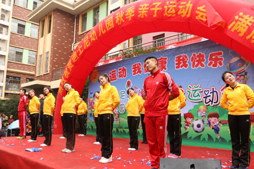 為了加強學校與家長之間的溝通與交流,增加孩子與家長之間的感情,豐富孩子的業余生活,給每個家長與孩子提供一個展現自我的平臺。11月14日上午,江西迪斯尼芳草園在園內操場舉辦了大型親子趣味運動會。盡管時值初冬,細雨紛飛,天氣陰冷,卻絲毫沒有減淡家長們的熱情。運動會尚未正式開始,迪斯尼幼兒園的操場上早已熱鬧非凡。