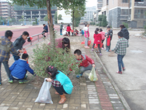 各班學生在班主任的帶領下,來到事先分配好的勞動地點,迅速地投入到了熱火朝天的勞動中。校園內到處都是老師和學生們忙碌的身影。他們手拿掃把、鐵鍬、火鉗、塑料袋、抹布、桶子等勞動工具,積極參與勞動,大家不怕臟,不怕累,都埋頭奮力拔草,掃地,清理垃圾,擦洗扶梯……。同學們有的手上扎了小刺,有的被泥土弄臟了衣服和鞋子,有的流出汗水,但是沒有一個人叫苦喊累。經過半個多小時的勞動,校園內的綠化帶、小樹中的石塊兒、垃圾、枯葉以及校園內衛生死角得到了徹底的清理,到處煥然一新。