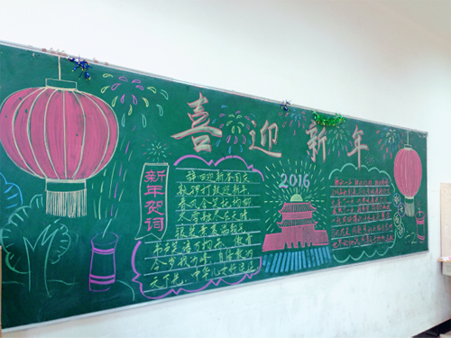2016年元旦將至,為了讓學生在緊張的學習中也能感受到新年的歡樂,開拓學生視野,南昌現代外國語學校(象湖校區)組織開展了“慶元旦、迎新年”黑板報評比活動。此次評比以年級為單位,分三個年級段進行評比。各班高度重視本次黑板報評比,班主任和學生一起動手,發揮豐富的想象力和創造力,經過認真準備,精心設計,一塊塊別具特色的黑板報呈現在大家的面前。每個班都能做到緊扣主題,內容豐富完整,版面設計新穎獨特。板報既蘊涵了師生們的奇思妙想,又充分表現了他們對新年的憧憬和對美好生活的向往。