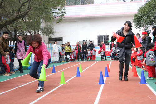 本次活動內容共包括教學展示、老師舞蹈表演、親子游戲以及包餃子四個內容。其中親子游戲掀起了本次活動的高潮,在親子游戲中,寶寶和家長們共同完成路障游戲任務,家長的著急,幼兒的認真,惹得場外的觀眾哈哈大笑,活動場地上隨處可見孩子和家長爽朗的笑聲和有力的加油聲。 每一輪游戲結束后,冠軍組的家庭和參與組家庭都會贏得場外的觀眾的喝彩。整個活動中,家長、孩子、老師臉上都洋溢著幸福快樂的笑容。