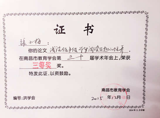 南昌現代外國語學校(象湖校區)長期注重發揮教育理論的引領作用,通過搭建各類信息平臺,指導教師將教育理論與教育教學實踐緊密結合。廣大教師始終注重課堂教學效益,不斷提升教學實踐水平和教學研究水平,教學之余積極參與各種論文征集、交流、發表活動。近日,在南昌市教育學會第三十屆學術年會上,我校張小梅老師撰寫的論文《淺談低年級學生閱讀興趣的培養》和張孌老師撰寫的論文《創新語文教學,深化課程改革》,榮獲三等獎。希望獲獎教師再接再厲,繼續為推動學校教研工作而努力,同時也希望其他教師能積極撰寫論文,參與各級各類的論文評比活動,為全面推進學校發展作出貢獻。