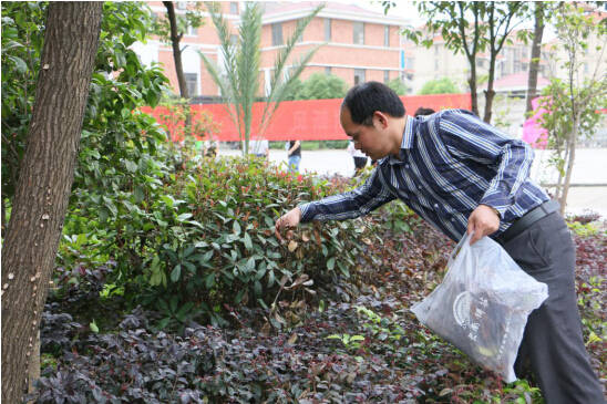 儀式結束后,劉富林參與校園大清掃