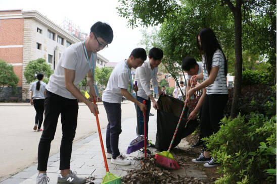 儀式結束后,劉明初參與校園大清掃