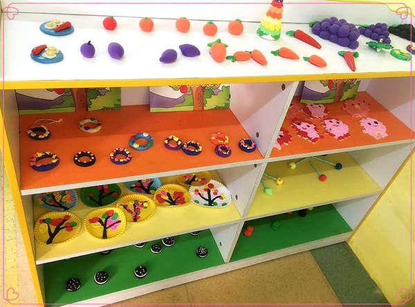 金沙園活動室經過老師們的精心布置,通過柜子的不同擺放,設置出了閱讀區、美工區、建構區、娃娃家、種植養殖區等區域。