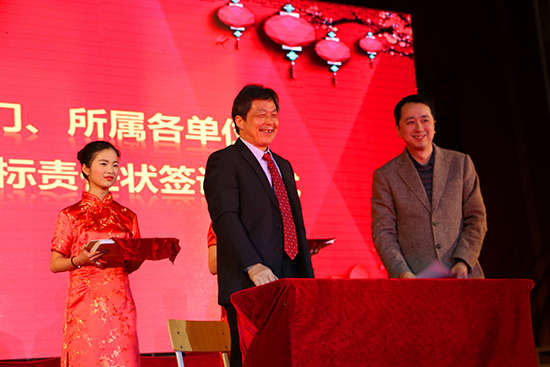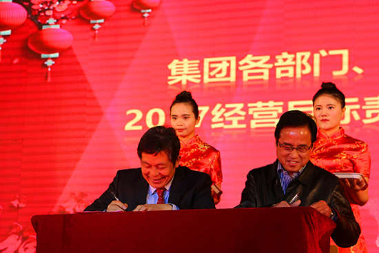 接下來的2017年經營目標責任書簽訂儀式是本次聯歡會的重要環節,集團各部門、所屬公司、院校負責人分別與胡董簽訂了經營目標責任書。2017年經營目標責任書的簽訂,使聚仁堂集團的經營戰略目標得到了進一步分解和落實,讓各業務板塊的經營目標更加清晰,是落實集團2017年度重點工作的重要舉措。