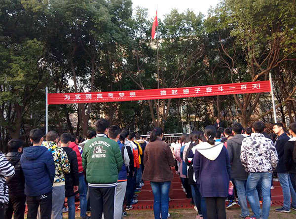 春日的陽光把每一位學子的臉映得通紅,學子們熱血激昂,我們將乘風破浪沖向彼岸,以青春的名義宣誓:鑄無怨無悔的青春。