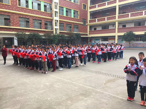 儀式中,歌聲嘹亮,隊旗、紅領巾格外鮮艷,在活動中,由六年級的老隊員為116名新隊員佩戴了紅領巾,全體新入隊的同學在大隊輔導員謝珊珊老師的帶領下,在莊嚴的隊旗下,高高地舉起右手大聲宣誓:“時刻準備著,為共產主義事業而奮斗!”。整個入隊儀式規范且隆重,洋溢著濃濃的溫暖之情,孩子們無比幸福和自豪的眼神告訴我們,他們定會在星星火炬的指引下,牢記黨的教誨,全面發展,茁壯成長。