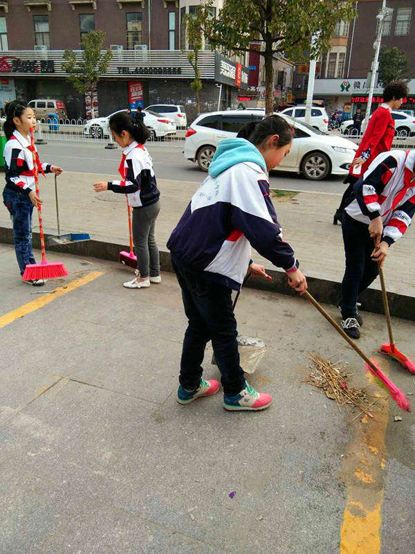 3月6日下午班會課時,在年級組組長熊梅老師的帶領下,組織了部分少先隊員開展了愛護環境義務勞動。對學校周邊的衛生進行全面的打掃,同學們沒有畏懼這些臟亂的角落,個個發揮不怕苦、不怕累的精神,分工協作,經過近一小時的勞動,校園周邊環境煥然一新。雖然同學們都累得汗流浹背,但看到自己的辛勤勞動換來了干凈整潔的環境,大家都會心的相視而笑。
