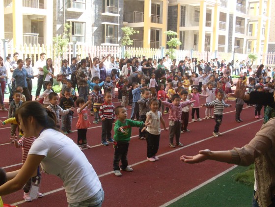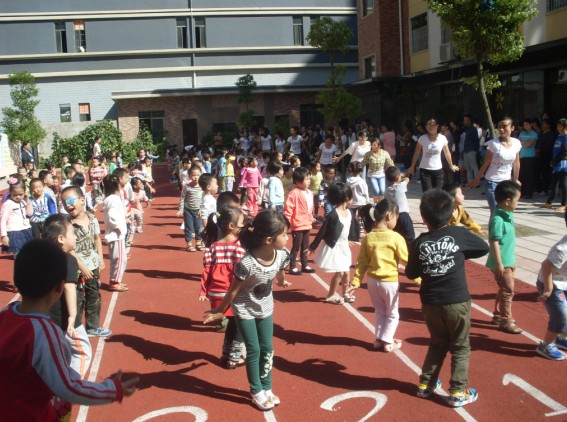 9月29日,在迪斯尼幼兒園、園外園幼稚園的操場上,響起了早操律動音樂,可愛的寶寶們在操場上跟隨著老師們的步伐,蹦蹦跳跳起來。在老師的帶動下,在場的家長們也紛紛加入進來,和寶寶們一起又唱又跳。迪斯尼幼兒園的老師們表演了民族舞《天藍藍》,還進行了古箏、個人舞的才藝表演,展示了幼兒園老師們朝氣蓬勃的精神面貌。園外園幼稚園的老師們也不甘示弱,在現場以特有的方式展現了幼兒園的承諾、愿景、文化。