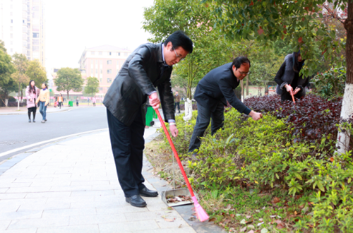 啟動儀式結(jié)束后,院領(lǐng)導、全體教職工、各系各班級積極組織班級學生,熱情高昂地回到各自的環(huán)境衛(wèi)生責任區(qū)進行義務(wù)勞動,老師、同學們用勞動的汗水和文明的習慣,換來了美麗和諧的校園環(huán)境,也美了自己的心靈。
