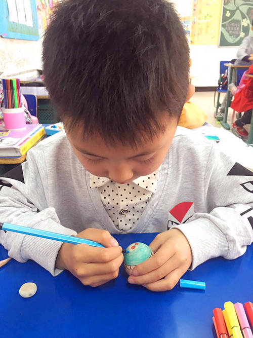 “繪彩蛋”是孩子們最喜歡的活動之一。美術課上,老師們介紹了清明節的來歷、風俗習慣和紀念意義,讓學生增長歷史知識,并結合美術教學,指導學生繪彩蛋,學習彩蛋藝術。孩子們興致勃勃地在各自帶來的熟雞蛋上作畫,他們用靈巧的雙手把一個個雞蛋描繪成五顏六色、創意豐富的彩蛋作品,美麗的圖案象征著圓圓滿滿,充分體驗傳統民俗樂趣。