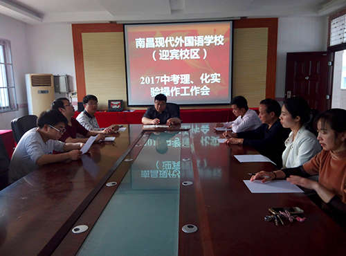 4月7日下午,南昌現代外國語學校(迎賓校區)召開了2017年中考理化生實驗操作專題工作會。學校理化生任課教師、全體實驗員及初中部鄧華校長、教務處楊小龍主任、政教處張曉軍主任參加了會議,會議由教務處楊主任主持。