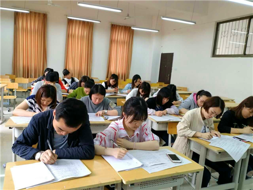 隨著一聲清脆的鈴響,老師們就低頭“唰、唰”地寫了起來(lái),教室里頓時(shí)鴉雀無(wú)聲。學(xué)校共有25人參加測(cè)試,有兩位老師得了雙百,平均分在90分以上的有20人,占總?cè)藬?shù)的80%。