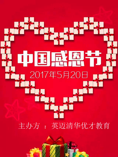 我們都知道,中國(guó)自古就不缺感恩精神,感恩讓教育更美麗,2017年5月20日,英邁優(yōu)才教育520感恩節(jié)大會(huì)即將拉開(kāi)大幕,屆時(shí),將有100組家庭與會(huì),共同見(jiàn)證這樣一個(gè)特別的感恩時(shí)刻。
