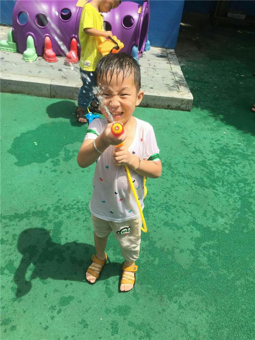 這次的活動(dòng)雖然時(shí)間不長(zhǎng),但是孩子們的收獲卻特別大,首先是快樂伴隨始終,在整個(gè)游戲過程中,老師聽到最多的就是孩子們的歡快的笑聲,所有小朋友全身心地投入到游戲的過程中,時(shí)不時(shí)地為打退別人的進(jìn)攻而興奮的歡呼。快樂的水槍大戰(zhàn)為炎炎夏日帶來(lái)了清涼,也為孩子們的童年留下了美好的回憶。