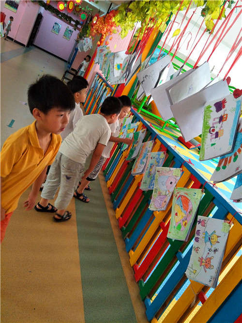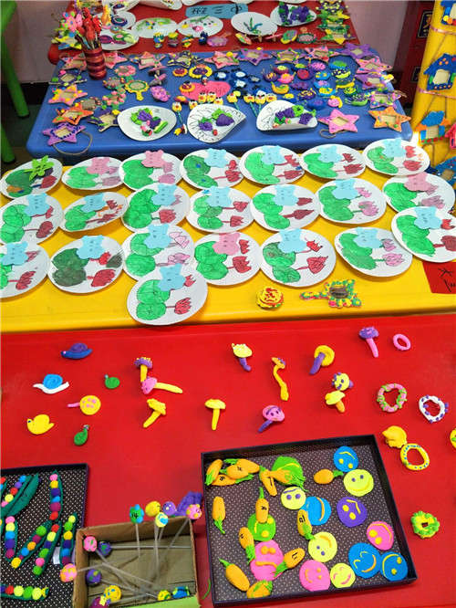 藝術節(jié)的作品形式多樣:有趣味彩泥、線描畫、蠟筆畫、水粉畫、創(chuàng)意美工作品等等。作品內容豐富,極富創(chuàng)意,展示了幼兒在本學期興趣班的成長與收獲。孩子最喜歡玩,喜歡游戲。通過生動形象的語言,以游戲的形式開展教學,把繪畫寓于游戲中,是幼兒園主要的教學方法。如在進行蠟筆畫教學中讓幼兒游戲的方式進行構圖,在涂色方面指導孩子學習了相似色、漸變色等多種涂色方法。創(chuàng)意粘土手工制作活動讓孩子們盡情發(fā)揮想象力,用五顏六色的黏土捏出自己所想要的形狀與造型。