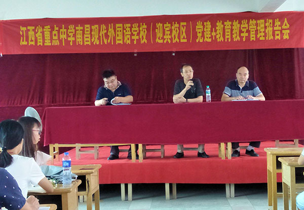 為加強學(xué)校黨建+教育教學(xué)管理工作,南昌現(xiàn)代外國語學(xué)校(迎賓校區(qū))于2017年9月2日下午4點,組織全體教師學(xué)習(xí)了《黨建+教育教學(xué)管理》。本次大會邀請到南昌一中熊春和書記為教師們授課。
