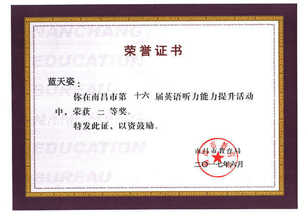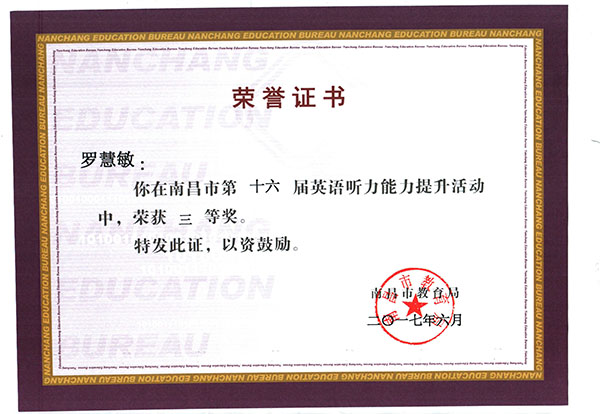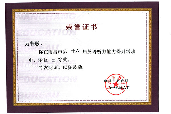 近日,在南昌市第十六屆英語聽力能力提升活動中,南昌現代外國語學校迎賓校區4名教師、高二、高三學生共計10名學生在活動中取得了優異成績。