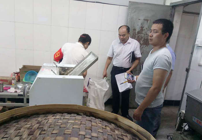 首先檢查組人員對食堂餐飲許可證、冷藏消毒、設(shè)備使用、食品留樣、健康證、進(jìn)貨食品索證索票、臺賬記錄等情況進(jìn)行了認(rèn)真細(xì)致的檢查。檢查組發(fā)現(xiàn)食堂管理制度不全,未按標(biāo)準(zhǔn)記錄原料采購臺賬、貯存食品方式不規(guī)范、不合標(biāo)準(zhǔn)。