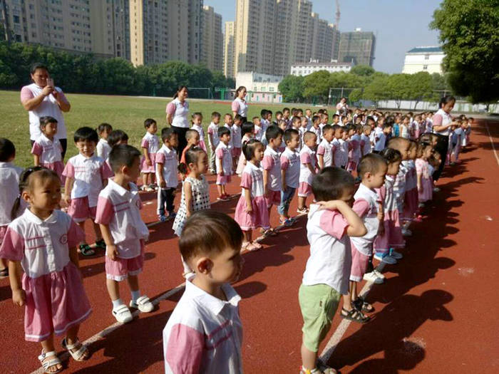 早上8:30,幼兒園的教師和孩子們排著整齊的隊伍,邁著有力的步伐,朝氣蓬勃、氣宇軒昂地走向操場,自覺有序地站立于升旗臺前,莊嚴地舉行升旗儀式。