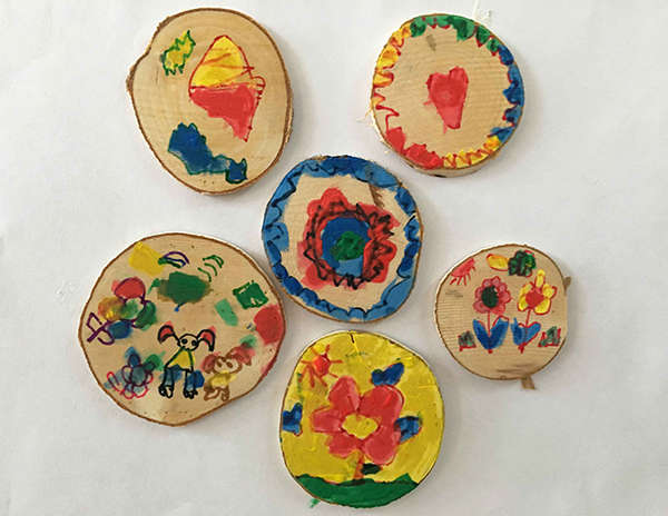 今天張老師給我們帶來了一節美術課《小木樁大創意》課程,開始前,張老師帶小朋友進行了一個小游戲木頭人,一下就調動了小朋友們的上課積極性。之后在張老師的精心準備下,一幅幅漂亮的圖片展現在大家面前,完全吸引了小朋友的眼球。這時,張老師引入了今天的主題木樁畫,小朋友平時作畫都是在我們的素描紙上,這次用了不同的材料——水粉,小朋友都很感興趣。