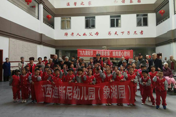 10月26上午,江西迪斯尼象湖幼兒園大班的孩子們在老師的帶領下,來到青云譜區敬老院,給敬老院的爺爺奶奶們送去了節日的祝福。