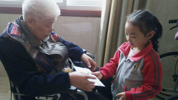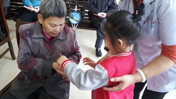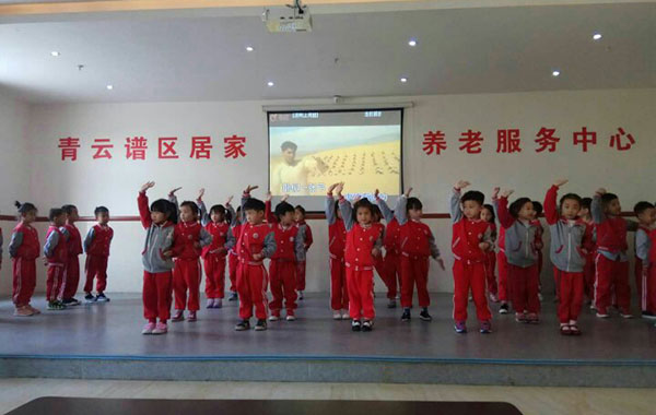 在敬老院里,孩子們給爺爺奶奶表演了準備已久的三字經、武術、手語感恩的心等表演節目,稚嫩的童音、活潑可愛的表演贏得了敬老院老人們的陣陣掌聲、笑聲。在老人的歡聲笑語中孩子們走到爺爺奶奶的身邊,給他們送去自己親手制作的賀卡以及家長親自做的糕點,還幫爺爺奶奶們捶背、揉肩,原本寂靜的老人院成了歡樂的海洋,爺爺奶奶們的臉上露出了幸福的笑容。最后小朋友們跟爺爺奶奶依依惜別的場面真是令人感動。