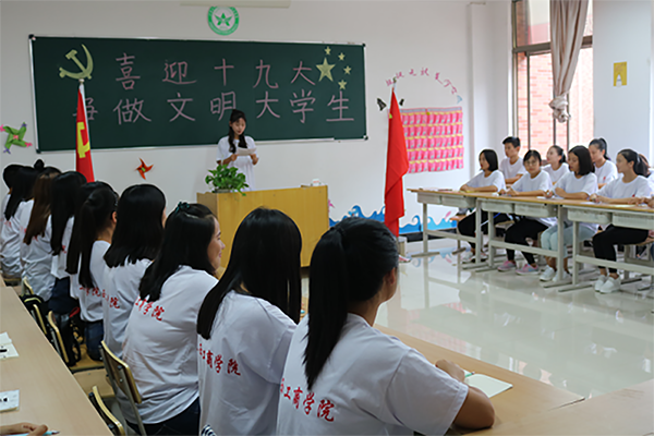 2017年10月11日,教育科學系學前教育(1)班在班主任朱云的組織下開展了“喜迎黨的十九大,爭做文明大學生“主題宣傳班會,學院院長劉明初,學工處處長周艷萍,教育科學系系書記李盛艷以及系主任助理劉凌云參加了此次班會,本次班會是主要圍繞黨在我心中,高舉紅色旗幟,爭創文明人為核心,做最美工商的建設者,進一步豐富大學生的文化內涵,以及對廣大學生進行良好的素質教育,為工商培育高素質人才,為社會注入一股新興的力量。