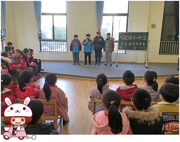 在分享會上,小學的哥哥姐姐們用自己的親身體會來告訴我們:讀書的習慣要從小養成。俗話說,書籍是人類進步的階梯。只有從小養成閱讀習慣,多看書,我們才能在知識的海洋里吸取更多的經驗。