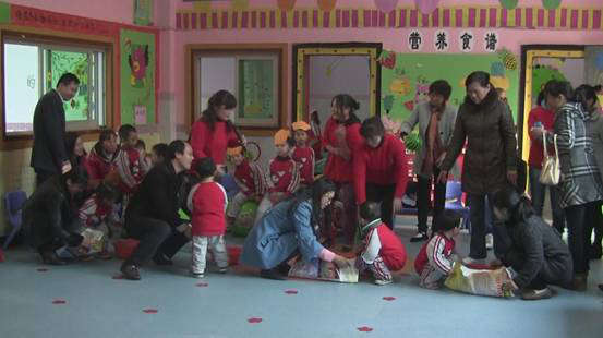 運動會以適合幼兒年齡特點的游戲為主,精心設置了《搬家樂》、《我喂媽媽(爸爸)吃豆豆》、《羊角球比賽》、《吹氣球》、《打保齡球》、《快樂貼貼貼》等6個項目,家長和孩子互相配合玩得不亦樂乎。整個游戲場上處處是孩子們快樂的身影,耳畔不時響起孩子們愉快的笑聲,孩子們的高興勁兒無法用語言表述。孩子們的情緒也感染著家長和老師們,激情的助威聲,勝利的歡笑聲不絕于耳。