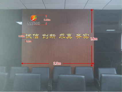 除前臺(tái)外,集團(tuán)辦公區(qū)域設(shè)計(jì)主要集中在照片墻、辦公室門牌和會(huì)議室背景墻上。照片墻上的相框錯(cuò)落有序排列著,里面展示的是各位領(lǐng)導(dǎo)蒞臨集團(tuán)及集團(tuán)各下屬企業(yè)、院校視察的照片,充分展現(xiàn)了集團(tuán)輝煌的發(fā)展歷程。各部門辦公室的門牌外形設(shè)計(jì)為長(zhǎng)方形,配以藍(lán)色底紋,與藍(lán)色的防撞貼顏色相呼應(yīng),讓人形成統(tǒng)一的視覺(jué)感受。順著過(guò)道一直往里走,來(lái)到了寬敞的會(huì)議室。根據(jù)會(huì)議室背景墻設(shè)計(jì)方案,將在幕墻上裝飾 “誠(chéng)信 創(chuàng)新 求真 務(wù)實(shí)”8個(gè)水晶大字,提醒大家要時(shí)刻謹(jǐn)記集團(tuán)的經(jīng)營(yíng)理念,努力實(shí)現(xiàn)集團(tuán)的發(fā)展目標(biāo)。
