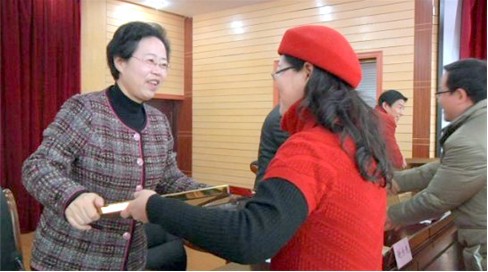 副市長姚燕平向南昌現代外國語學校董事長劉雁華頒發榮譽獎牌