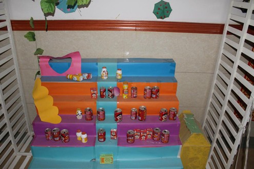 評比活動中,老師們積極主動想辦法、動腦筋,利用空易拉罐、塑料瓶、廢硬殼紙等廢棄物品,做出各種各樣的有趣的教具、小盆景等,還把各班的墻面、地面等進行重新布置。老師們根據本班活動區和主題墻創設新環境,活動區有建構、藝術、科學等區域,主要作為孩子自由活動的空間;主題墻根據教學計劃創設,用于輔助教學。她們剪的剪、畫的畫、配合非常默契,從環境布局、材料添置,到幼兒學、玩教具內容的豐富,事無巨細,每一樁、每一件都融入了集體的智慧。