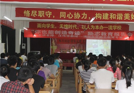 8月24日,南昌現(xiàn)代外國語學校迎賓校區(qū)組織舉辦了面向該校全體高三年級學生的“你也能創(chuàng)造奇跡”勵志教育報告會,由國內著名勵志教育專家汪傳華主講。